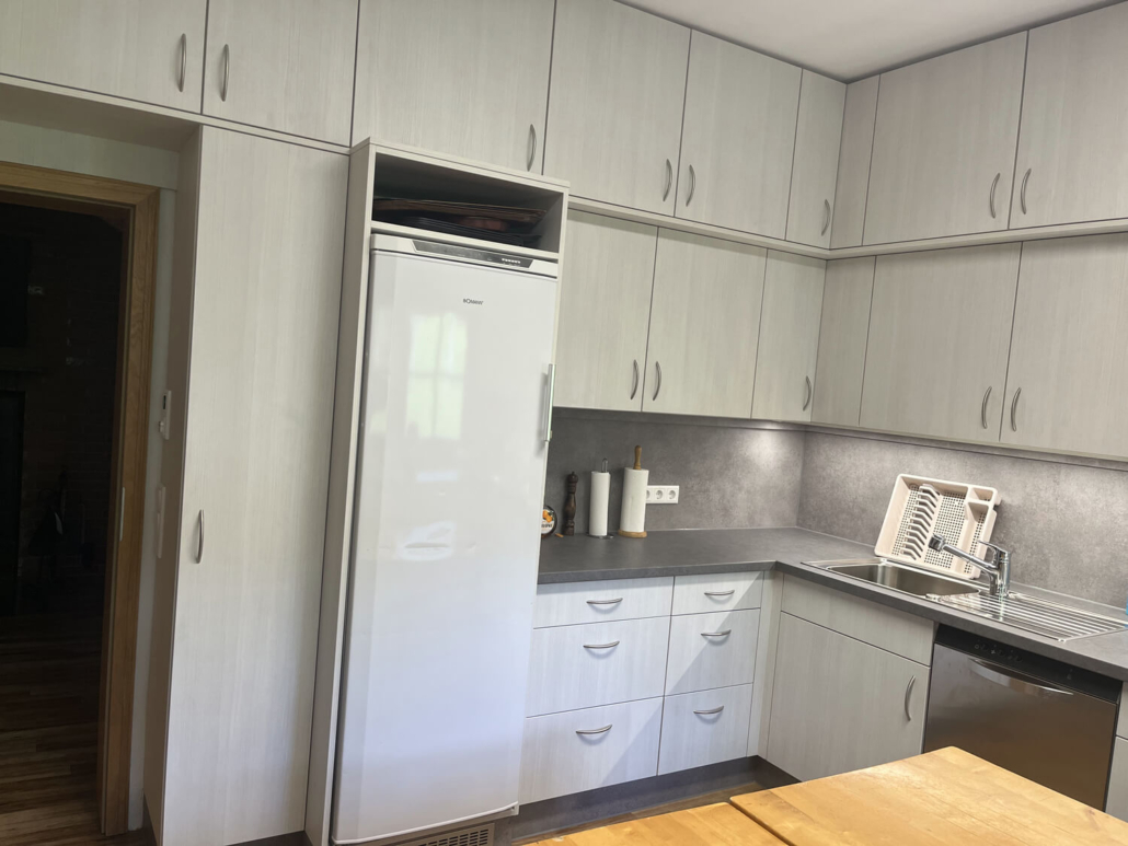Die Küche, dank sorgfältiger Pflege noch leidlich in Schuss, wurde nun aber doch völlig erneuert. Das war kein Luxus. Die größte Errungenschaft ist sicherlich die Geschirrspülmaschine, die jede Ladung Teller und Tassen in zwei Minuten zu Hochglanz verhilft. Die neuen Schränke, die unser Schreiner Ewald Vorndran in Handarbeit zusammengebaut hat, reichen hoch bis unter die Decke. Da geht der Stauraum so schnell nicht aus. Gute Dienste wird sicherlich auch der neue, viel größere Kühlschrank leisten. Ein Gefrierschrank und der alte Kühlschrank wurden im Keller aufgestellt und helfen, die große Nachfrage bei Vereinsfesten zu befriedigen. Weil die Wehmut doch zu groß war, blieben die bunten historischen Fliesen an den Wänden – eine letzte Reminiszenz an die Kinderjahre der Hütte vor sieben Jahrzehnten.