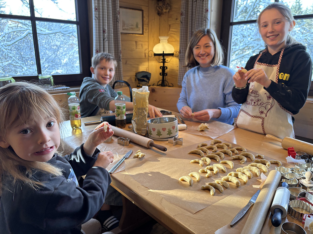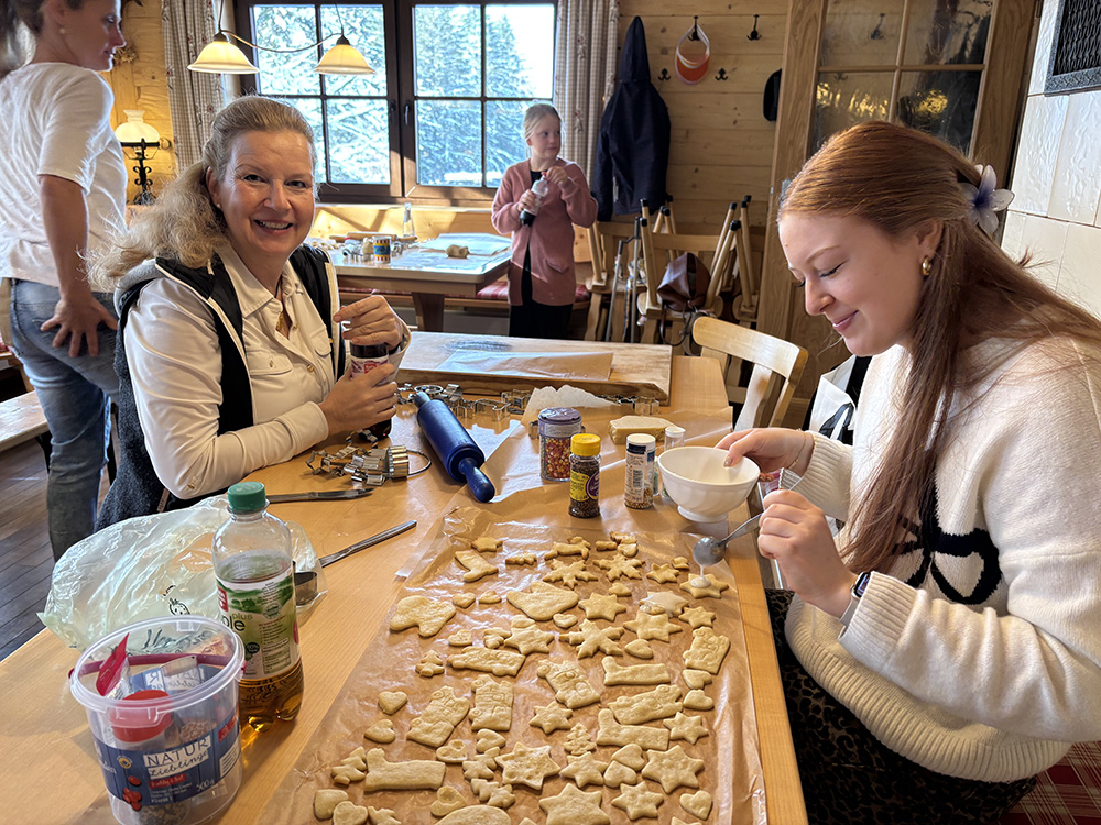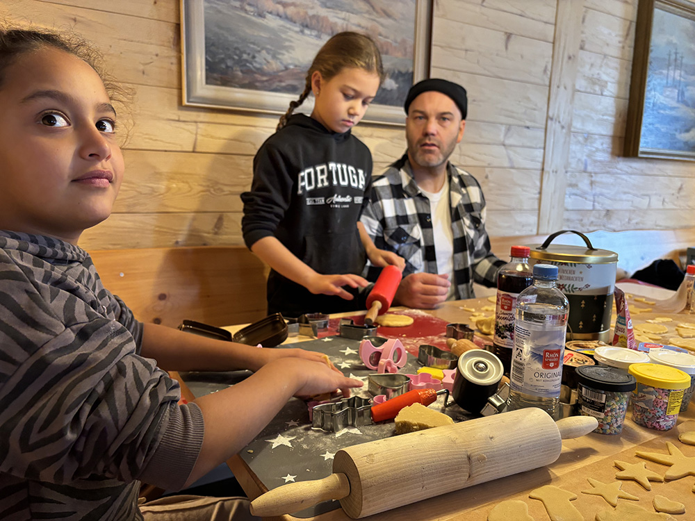 Das erste Weihnachtsbacken auf der Skihütte war gemütlich und stimmungsvoll. Während draußen sogar der erste Schnee zum Schlittenfahren einlud, erfüllte drinnen der Duft von Vanillekipferln, Butterplätzchen und Kaminwärme die Hütte.